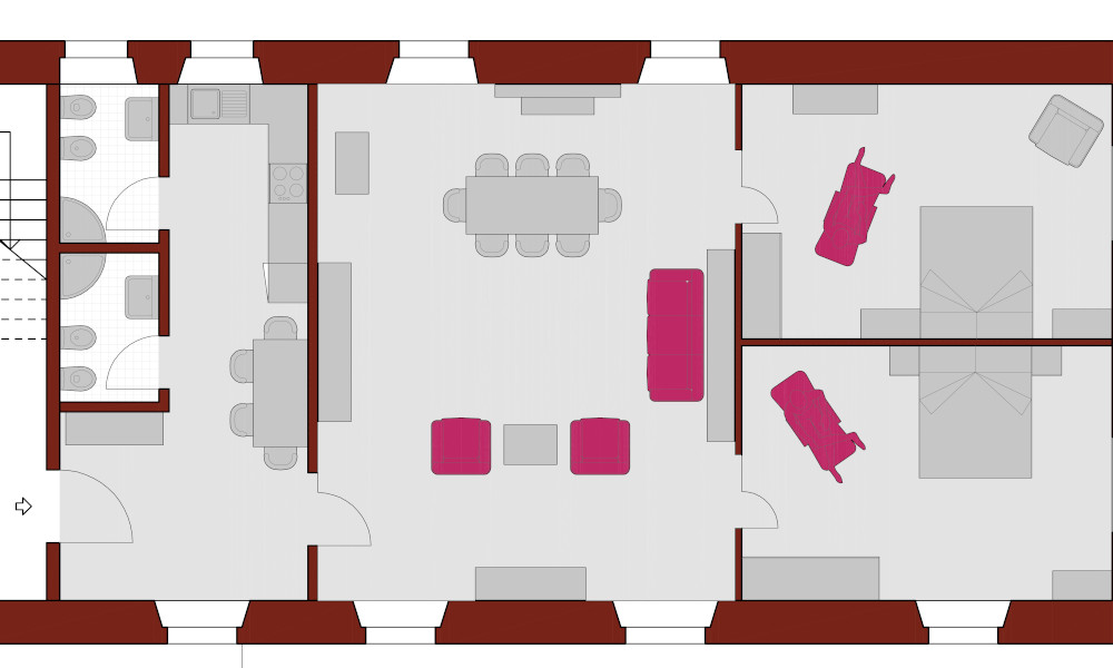 Das Apartment überspannt den kompletten ersten Stock des rechten Flügels der Villa und bietet Platz für 2 bis 6 Personen